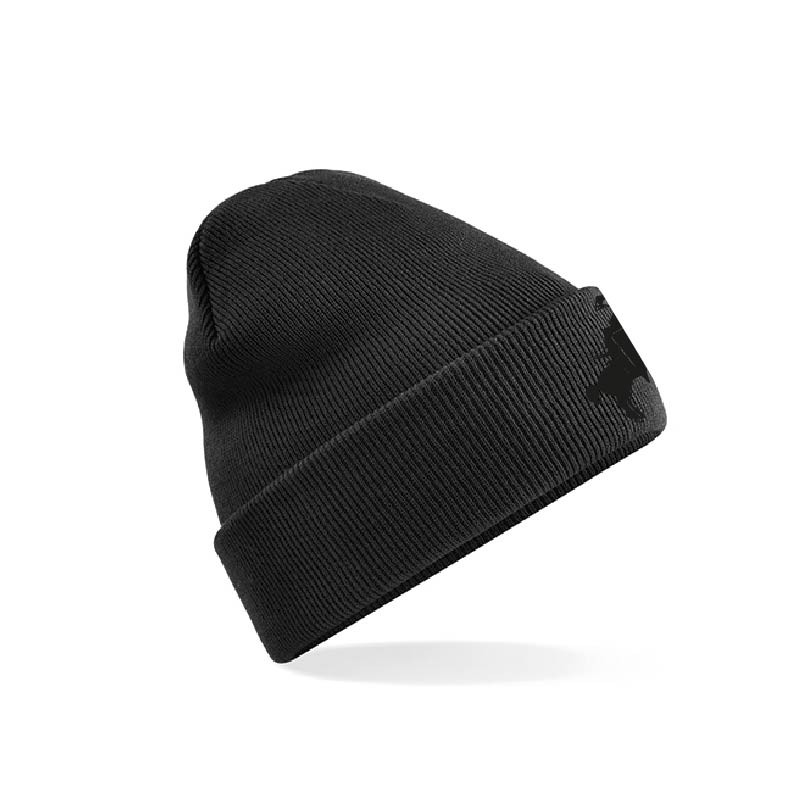 Beanie, bestickt mit dem Warriors Ritter in schwarz auf schwarz.