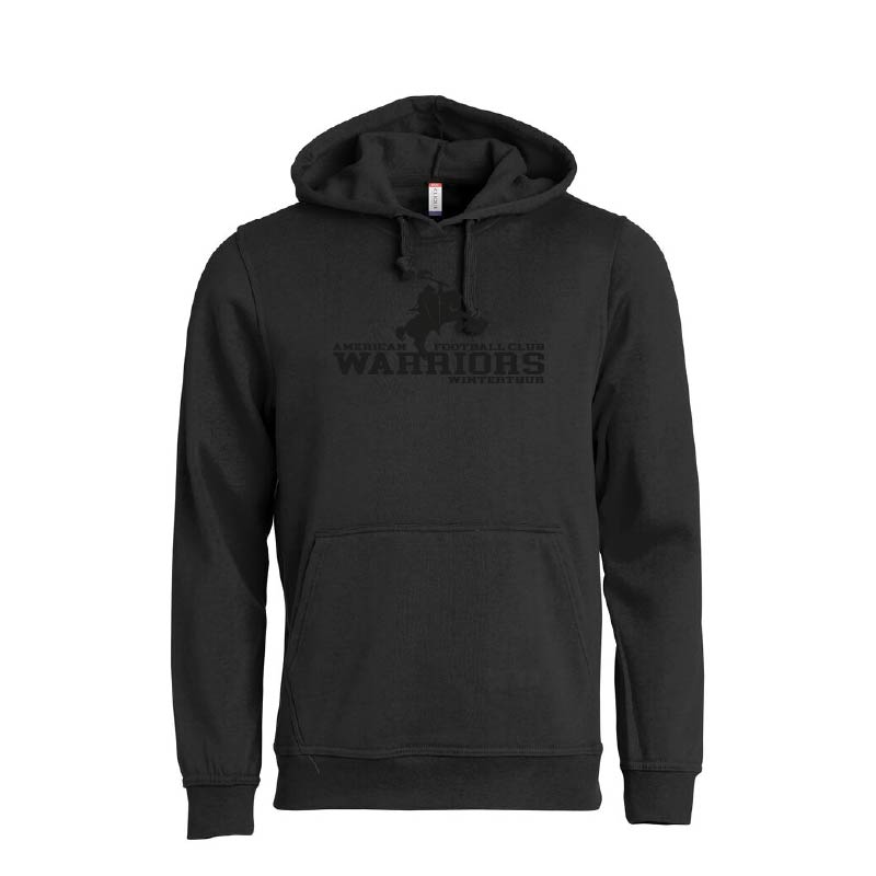 Leichter Hoodie, bedruckt mit dem Warriors Logo schwarz auf schwarz